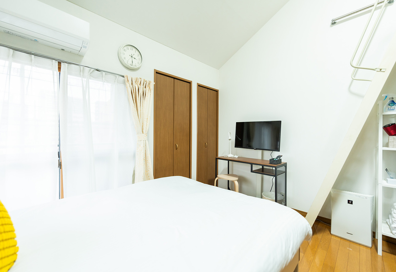 ROOMS Hakozaki is an air-conditioned apartment with a separate bedroom with a double bed, a loft, a fully equipped kitchen (with microwave and refrigerator), a bathroom, toilet and a balcony. There is a washing machine in the room, and it is located 1 minute to the nearest supermarket and only 5 minutes from JR Hakozaki Station to Hakata Station, making it an apartment hotel suitable for long-term stays. It is conveniently located, 3 minutes walk from the nearest Hakozaki Station, and only 5 minutes by JR from Hakozaki Station to Hakata Station.